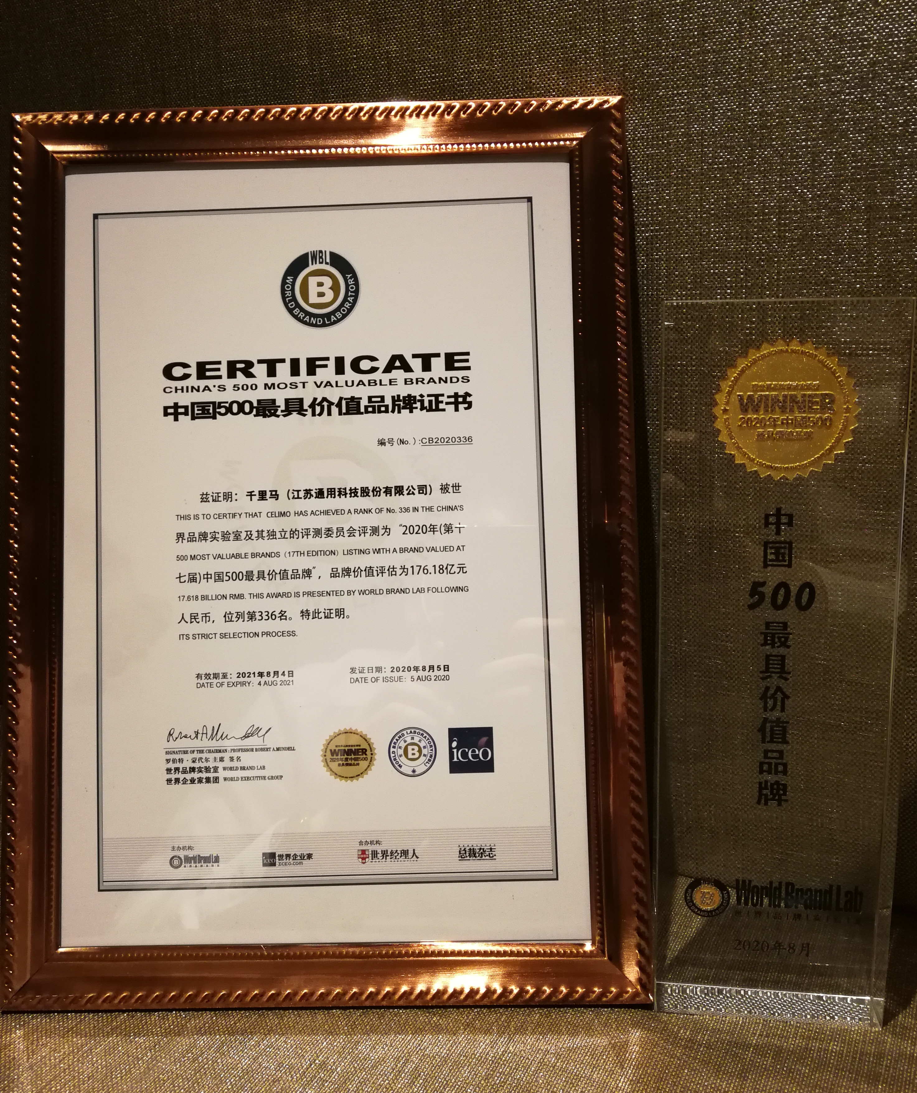 8月5日下午,在世界品牌實驗室(World Brand Lab)主辦的第十七屆世界品牌大會暨2020年中國500最具價值品牌發(fā)布會上,通用股份旗
