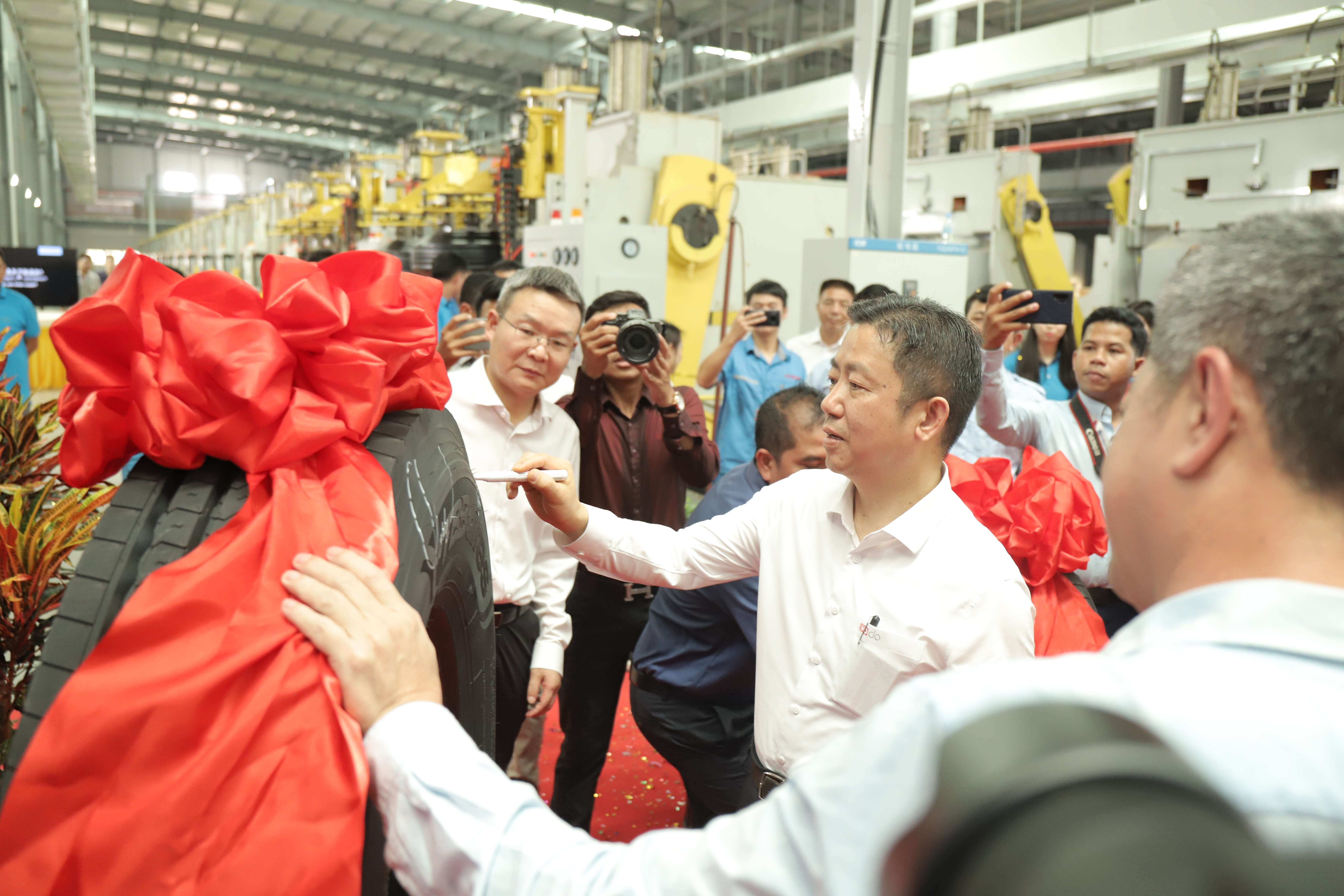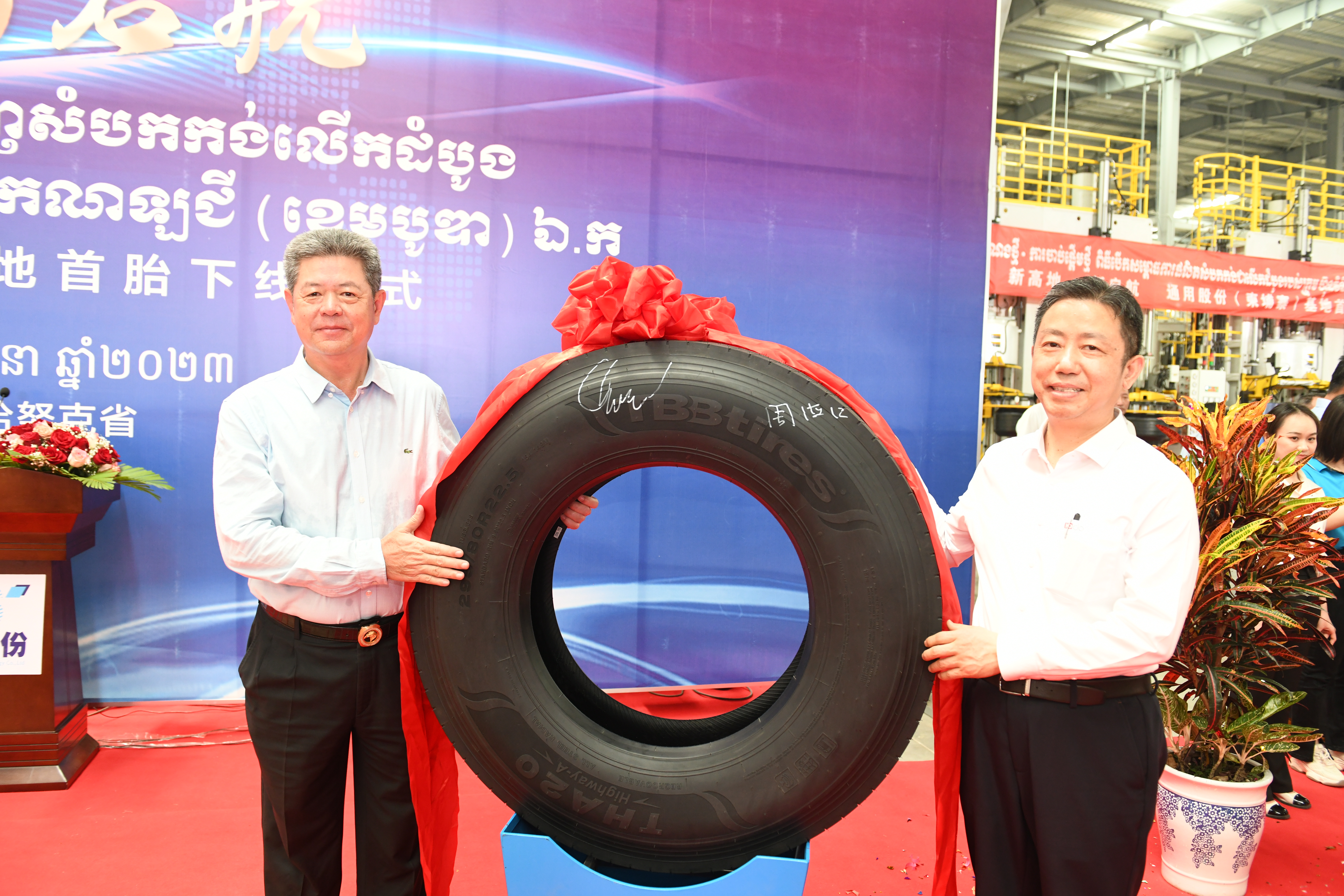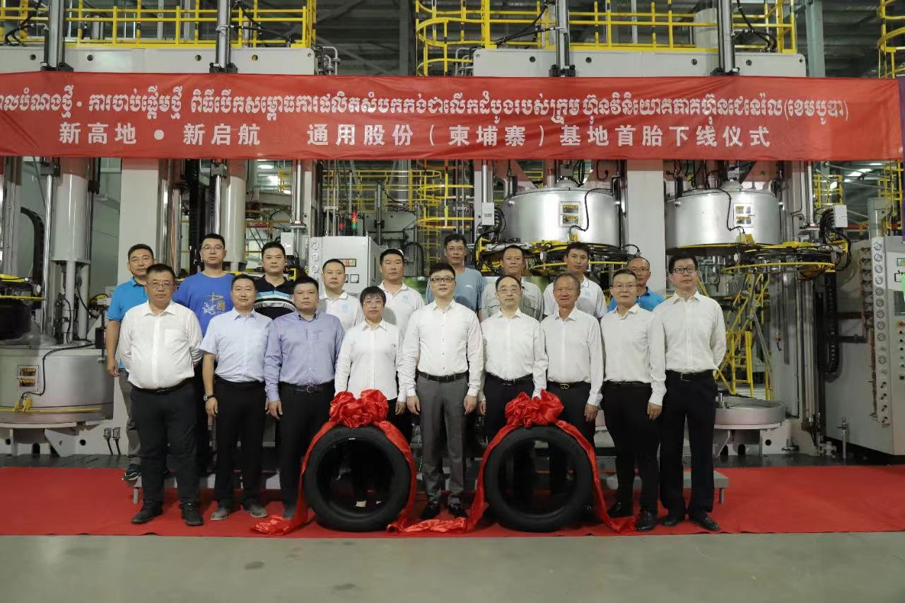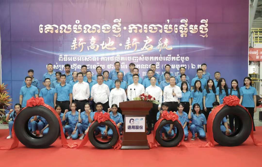 “5、4、3、2、1,出鍋!.......”3月18日,在通用輪胎科技柬埔寨公司總經理陶國忠的倒數(shù)聲中,柬埔寨工廠首胎成功下線,標志著通用股份海外“雙基地”的正式建成、全面啟航。在首胎下線儀式上,西哈努克省省長郭宗仁、喬治·布什美中關系基金會創(chuàng)始人兼主席尼爾·布什,中國民營經濟國際合作商會會長、紅豆集團董事局主席周海江,通用股份董事長顧萃等相關領導和全體員工共同見證了這一歷史時刻。