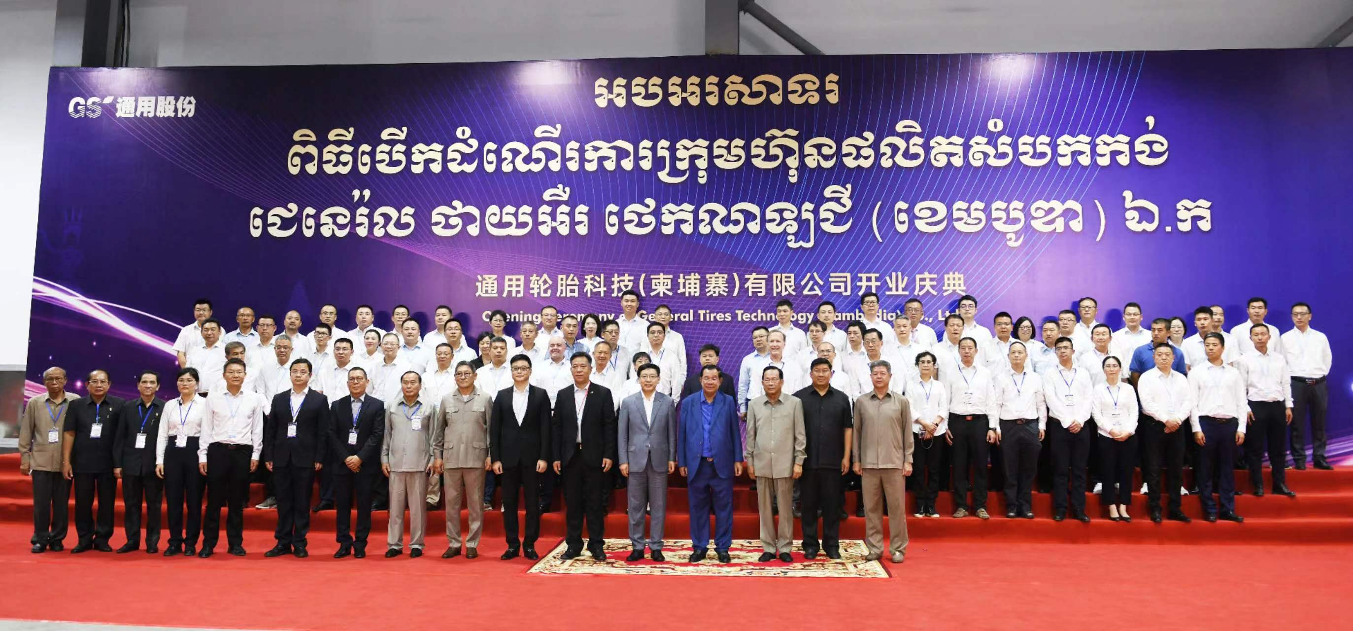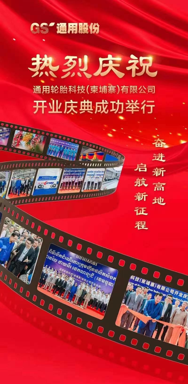 2023年5月22日,“奮進新高地 啟航新征程”——通用輪胎科技(柬埔寨)有限公司開業慶典在柬埔寨西港經濟特區隆重舉行。柬埔寨首相洪森親臨現場,中國駐柬埔寨大使王文天、中國駐柬埔寨大使館參贊鄔國權等中柬兩國政府領導及通用股份董事長顧萃、柬埔寨基地全體員工共同參加了活動,見證通用股份國際化戰略布局中的又一重要里程碑。