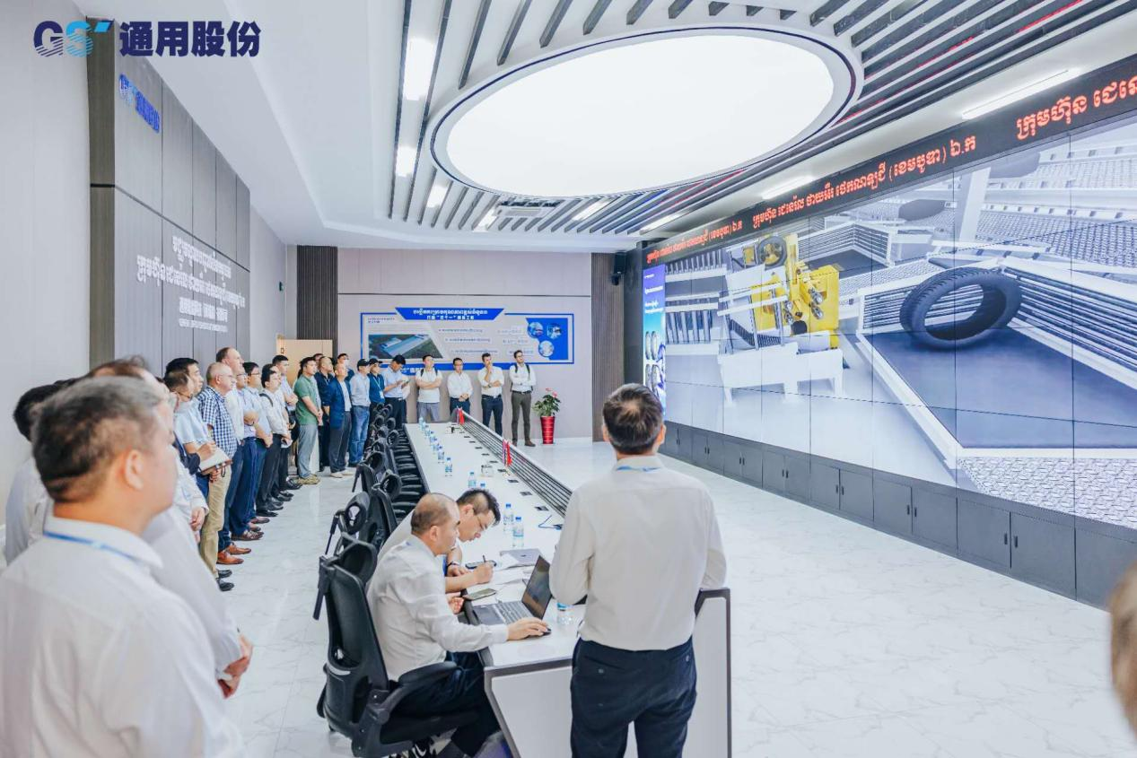 通用輪胎科技(柬埔寨)有限公司負責人陶國忠從項目概況、項目歷程和項目規劃作專項匯報。他介紹,公司將秉承“讓每一條輪胎成為精品”的使命,圍繞“高端化、自動化、信息化”,復制國內總部“黑燈車間”和“5G碳云智能工廠”的成功經驗,打造海外智能化工廠樣板,實現“人效、能效、品效”的三效合一,向打造國際影響力的輪胎企業不懈邁進。
